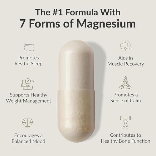 BIOptimizers Magnesium Breakthrough Supplement with 500mg – 7 Forms of Magnesium: Glycinate, Malate, Citrate, and More – Natural Support for Sleep and Cognitive Function -60 Capsules- Calming Vitamins