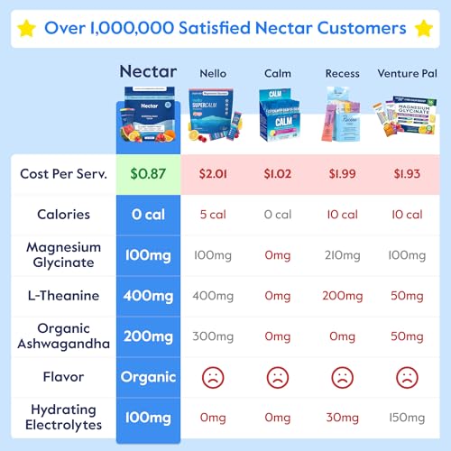 Nectar Calm Magnesium Glycinate Drink Mix – Sugar Free & Zero Calorie – with Organic Ashwagandha, Vitamin D, L-Theanine, Electrolytes – Deep Sleep, Relax, Focus & Calm – Non-GMO (Variety 30 Sticks)