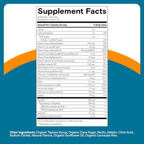 New and improved SmartyPants Men’s Plus Multi & Omegas is a premium, multifunctional supplement that contains more of the nutrients you want in a delicious gummy format! Each serving delivers a robust blend of vitamins and nutrients including omega-3 DHA and EHA from algal oil, folate in the premium form, methylfolate, to help form red blood cells*, vitamin D in the premium form, D3, for bone health*, vitamin B12 to support energy metabolism*, and iodine for thyroid support.* We use nutrient forms that your body can easily absorb to help to fill nutrient gaps and support overall good health.* Our formulas are non-GMO and made without any synthetic colors, artificial flavors or sweeteners. *Gummies per serving have decreased from 6 gummies to 3 gummies and the sugar content has been lowered from 6 g to 3 g per serving.