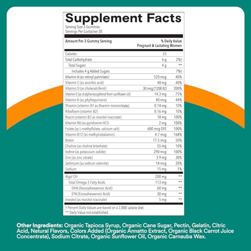 New and improved SmartyPants Prenatal Plus Multi & Omegas is a premium, multifunctional supplement that contains more of the nutrients you want in a delicious gummy format! Each serving delivers a robust blend of vitamins and nutrients including omega-3 DHA and EHA from algal oil, folate in the premium form, methylfolate, for normal early fetal development*, biotin to help maintain healthy hair, skin, and nails* and iodine for thyroid support* all in one easy and delicious serving.* We use nutrient forms that your body can easily absorb to help to fill nutrient gaps and support overall health and fetal development.* Our formulas are non-GMO and made without any synthetic colors, artificial flavors or sweeteners. *Gummies per serving have decreased from 4 gummies to 3 gummies and the sugar content has been lowered from 6 g to 4 g per serving.