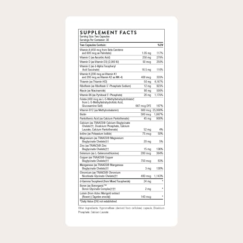 THORNE – Basic Nutrients 2/Day – Comprehensive Daily Multi-Vitamin with Optimal Bioavailability – Vitamin & Mineral Formula – Third-Party Certified – Gluten, Dairy & Soy-Free – 60 Capsules