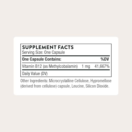 THORNE – Vitamin B12 – as Methylcobalamin – Supports Heart & Nerve Health, Blood Cell Function, Restful Sleep & Methylation* – Third-Party Certified – Gluten, Dairy & Soy-Free – 60 Capsules