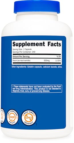 Nutricost Vitamin B3 Niacinamide 500mg, 240 Capsules – Gluten Free, Non-GMO, Soy Free, No Niacin Flush, Energy Boost, Premium Quality