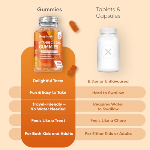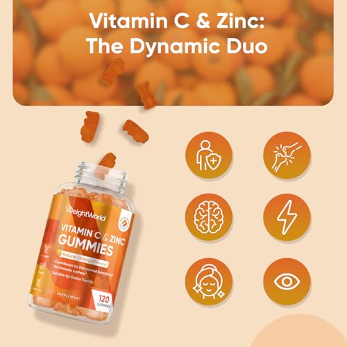 DELICIOUS NATURAL ORANGE FLAVOUR: WeightWorld’s Vitamin C with Zinc Gummies offer a delightful, natural orange flavour that makes daily intake feel like a treat rather than a task. With their tempting, easy-to-chew texture, these Zinc Vitamin C gummies offer a simple way to add key nutrients to any lifestyle, without the need for water. Just take 2 gummies a day for an enjoyable experience!