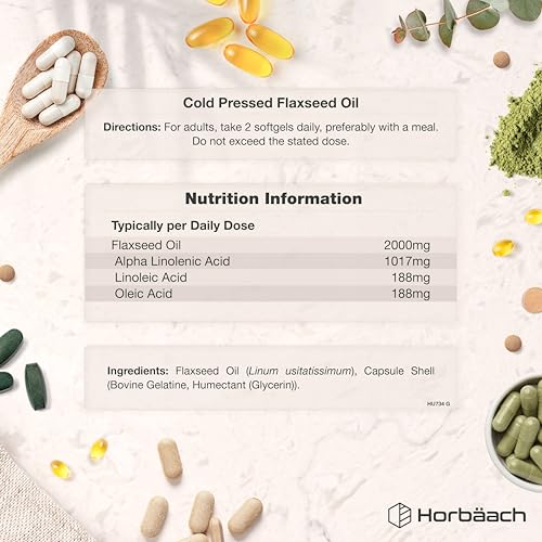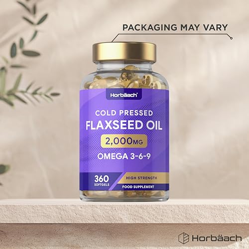 Flaxseed Oil Capsules 2000mg | 360 Softgels | Omega 3 6 9 with High Strength Alpha Linolenic Acid (ALA) | Cold Pressed Supplement | by Horbaach