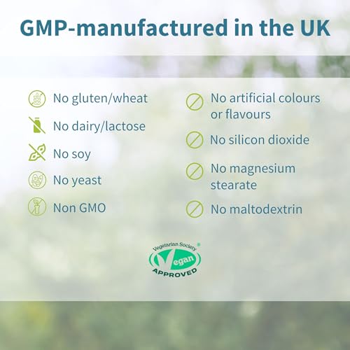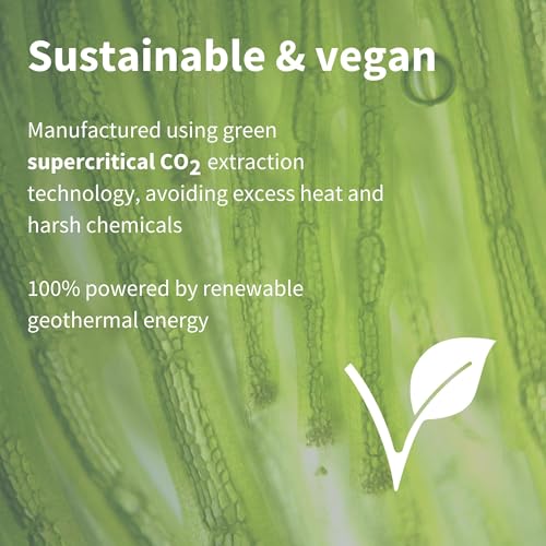 VEGAN – supplied in vegan seaweed capsules, GMP manufactured in the UK, hypoallergenic & no gluten, dairy, lactose, yeast; non-GMO; certified vegan