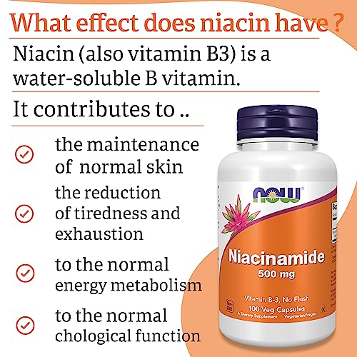 IMPORTANT VITAMINS: Niacinamide from Now Foods contains 500 mg of niacin, also called vitamin B3, an important vitamin for many processes in the human body