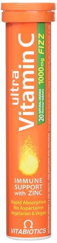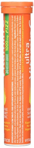 Immune support with added zincUltra Vitamin C Fizz provides 1000mg vitamin C, carefully balanced with zinc for maximum efficacy. Both vital nutrients help to maintain normal immune system function.Vitamin C also contributes to normal nervous system function, normal collagen formation and increases non-haem iron absorption. Iron is the mineral essential for healthy blood formation.Effervescent FormulaUltra Vitamin C Fizz is an effervescent formula that makes a refreshing, natural orange flavoured drink. It is ideal for those who prefer an alternative to tablets or capsules. If you would prefer a vitamin C formula in tablet form, try the original Ultra Vitamin C.Immune System SupportVitamin C and zinc are important for overall health and wellbeing as they both contribute to the normal functioning of the immune system.Vitamin C also helps to maintain normal immune system function during and after intense physical exercise*, so Ultra Vitamin C Fizz is an ideal addition for your gym bag.Collagen SynthesisVitamin C is a co-factor for collagen synthesis, the substance that keeps skin supple. It contributes to normal collagen formation for the normal function of bones, teeth, cartilage, skin and blood vessels.Supporting Iron AbsorptionSeveral foods and beverages contain substances that inhibit iron absorption, including tea and coffee. Vitamin C increases non-haem iron absorption, the mineral essential for normal formation red blood cells and haemoglobin. Iron is important in the body as it contributes to normal oxygen transport in the body to all cells and organs.* The beneficial effect is obtained with a daily intake of 200 mg in addition to the recommended daily intake of vitamin C.