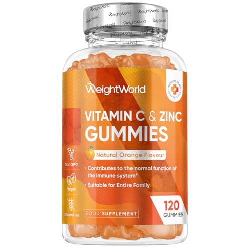 Vitamin C and Zinc Gummies – 120 Tasty Gummies – For Kids & Adults – Natural Orange Flavour – 2 per Day – Gluten-Free, Vegan-Friendly & Non-GMO – Bioavailable Forms (L-Ascorbic Acid & Zinc Citrate)